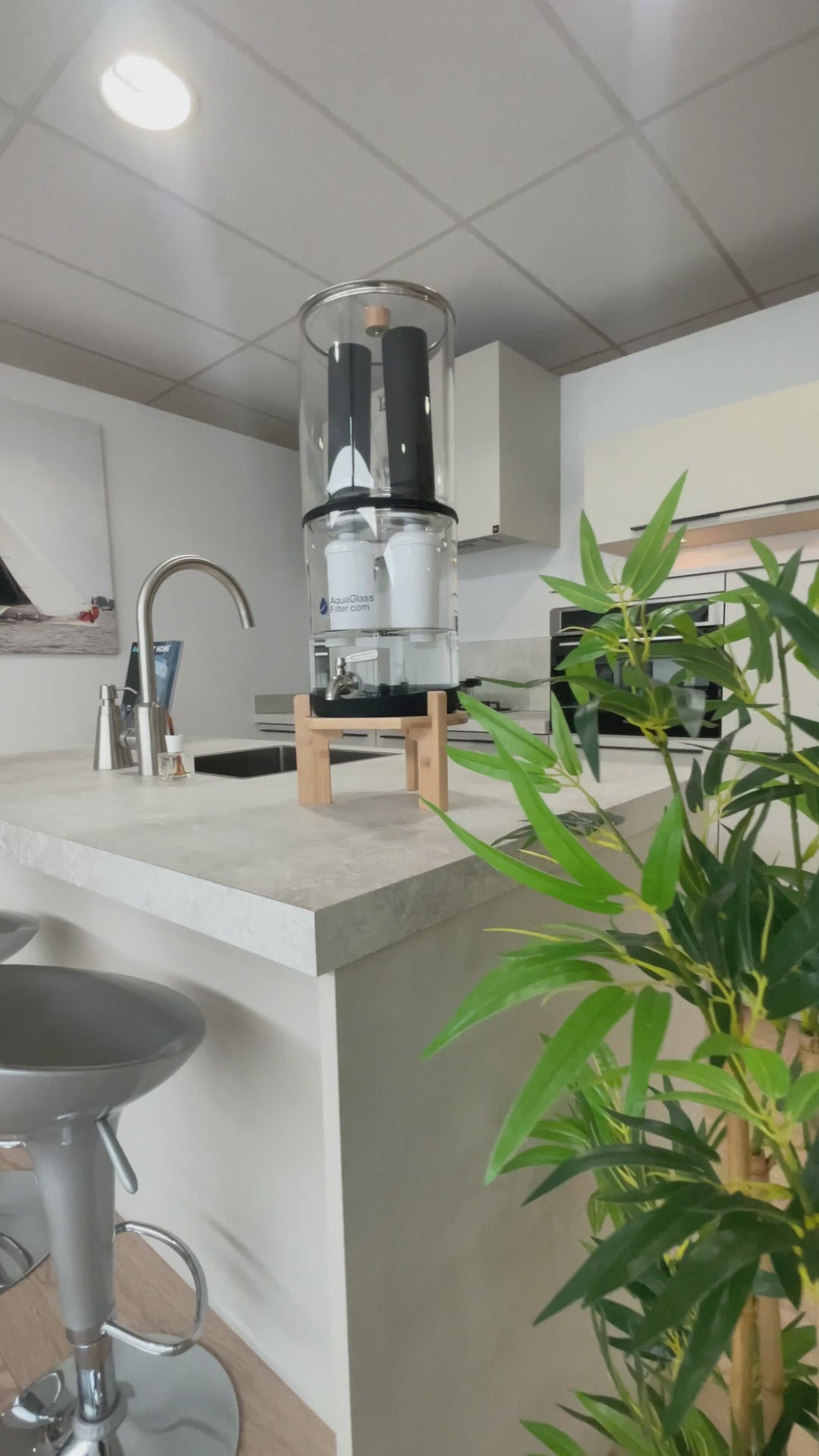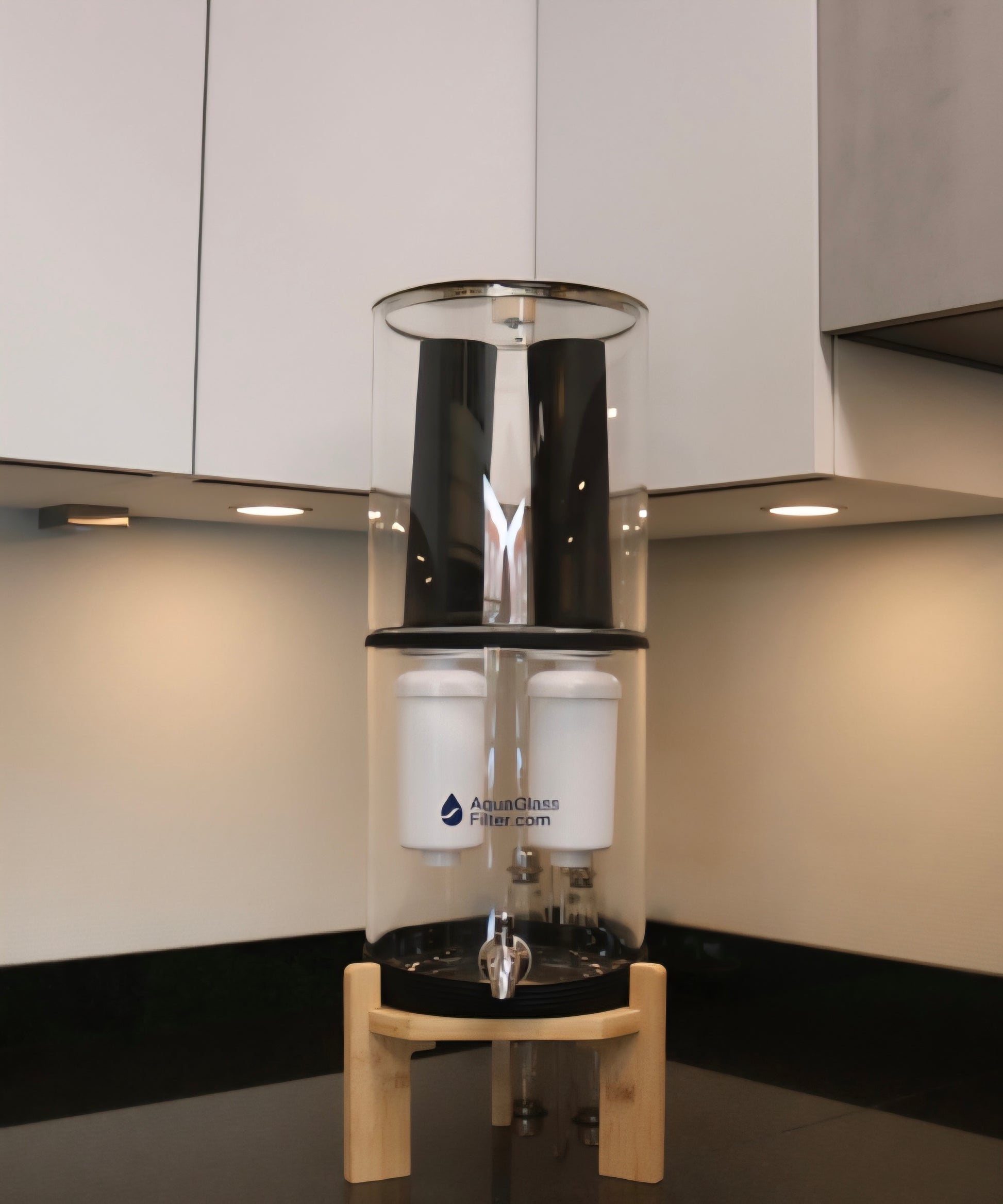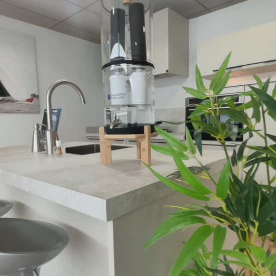 Het AquaGlassFilter is een 8 liter glazen zwaartekrachtfilter dat je kraanwater diepgaand zuivert, terwijl natuurlijke mineralen behouden blijven. Geen installatie, geen elektriciteit – alleen rustig doorlopend, helder water in een smaakneutraal glazen reservoir.
